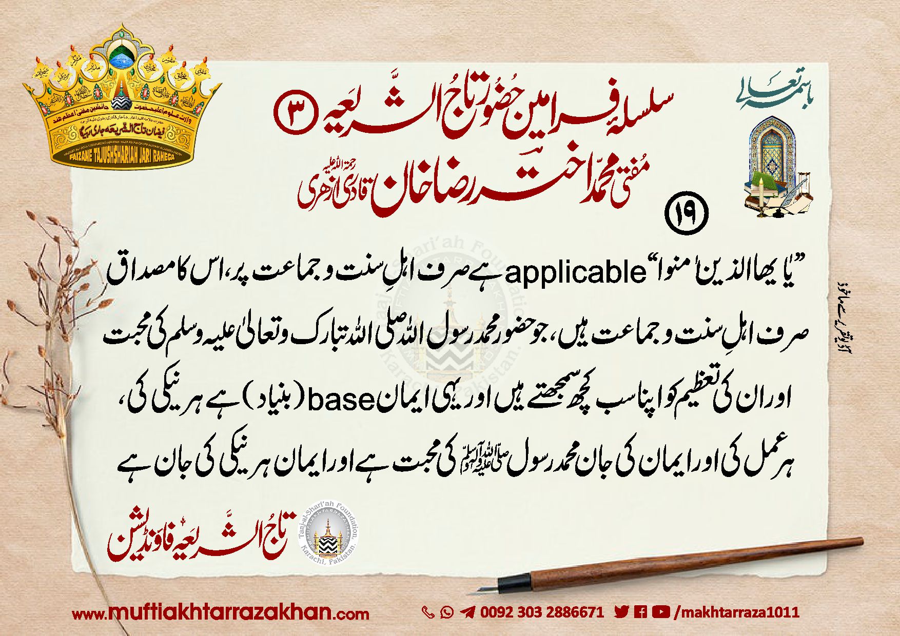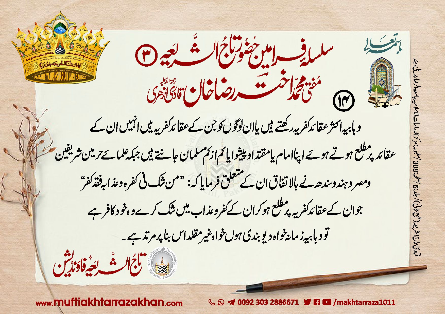 تاج الشریعہ فاؤنڈیشن کی تاریخی پیشکش